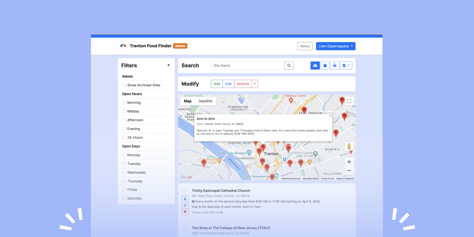 Interactive directory and administration platform for food distribution resources, made in collaboration with the Trenton Health Team.