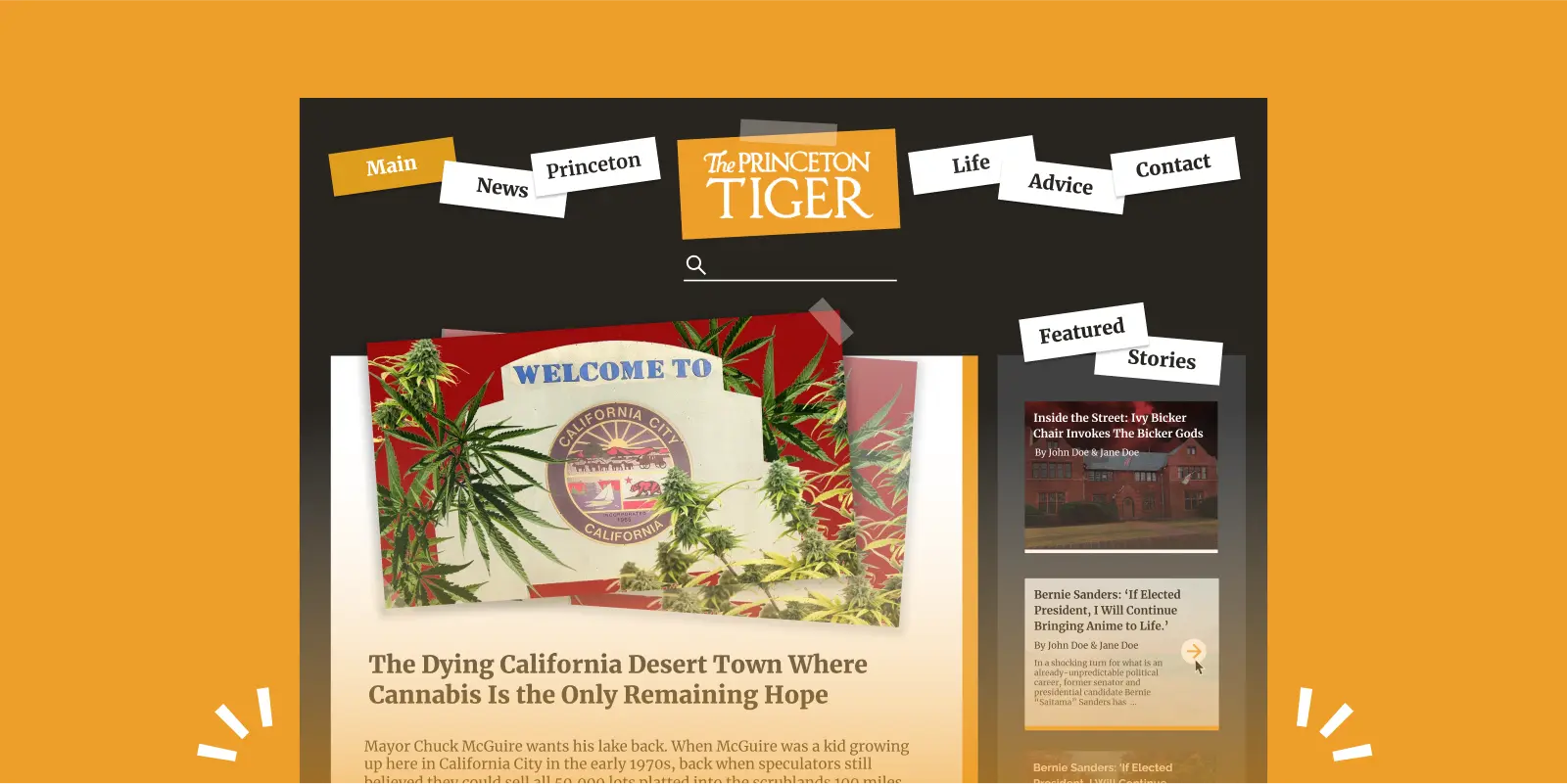 During the 2020-2021 fall semester, I joined a Hoagie project subteam to build a brand new website for Tiger Magazine, Princeton University’s historic humor publication. Acting as both a web designer and developer, I contributed to the website’s design numerous mockups, made with Figma, taking into account the needs ands desires of the publication and its executives. On the development front, I acted as a frontend developer in building the publication’s new website with Frontity, a React framework utilizing Wordpress as a headless CMS. My primary contributions to development were the creations of base components for individual article pages and the home page’s content grid, as our team decided to build all of the website’s components ourselves instead of using an existing component library.